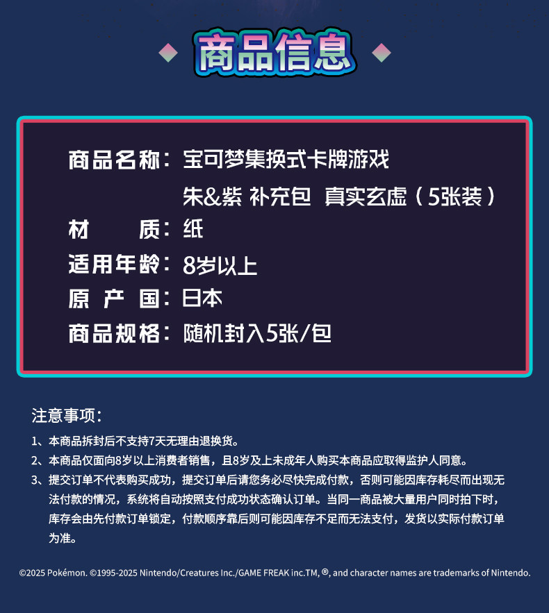可梦集换式卡牌游戏 PTCG 简中 朱&紫 真实玄虚 补充包5张装