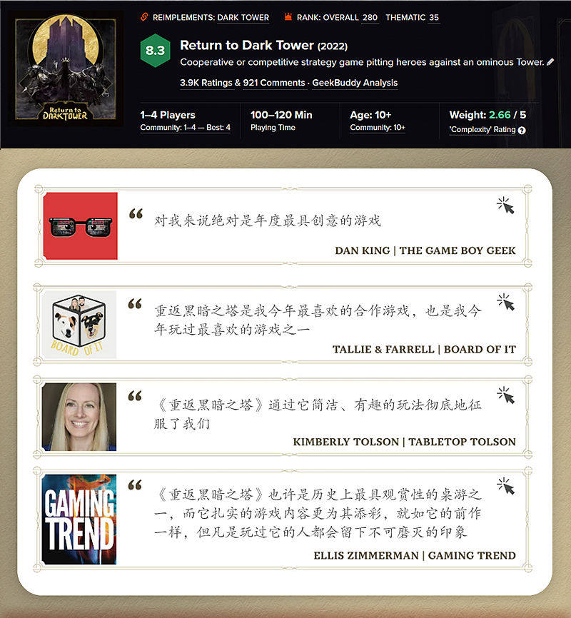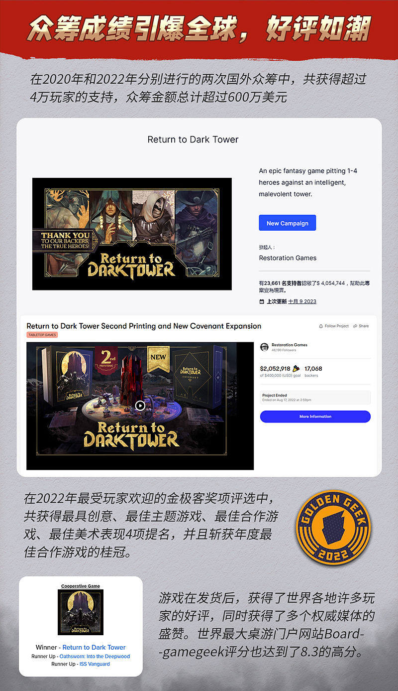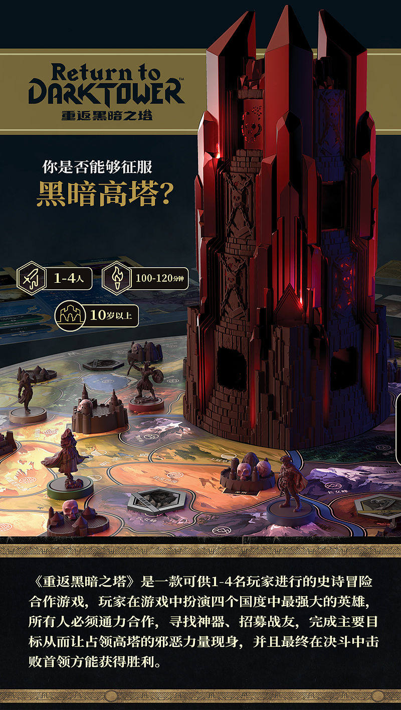 《重返黑暗之塔》桌游1-4人史诗冒险合作游戏休闲聚会桌游 附app