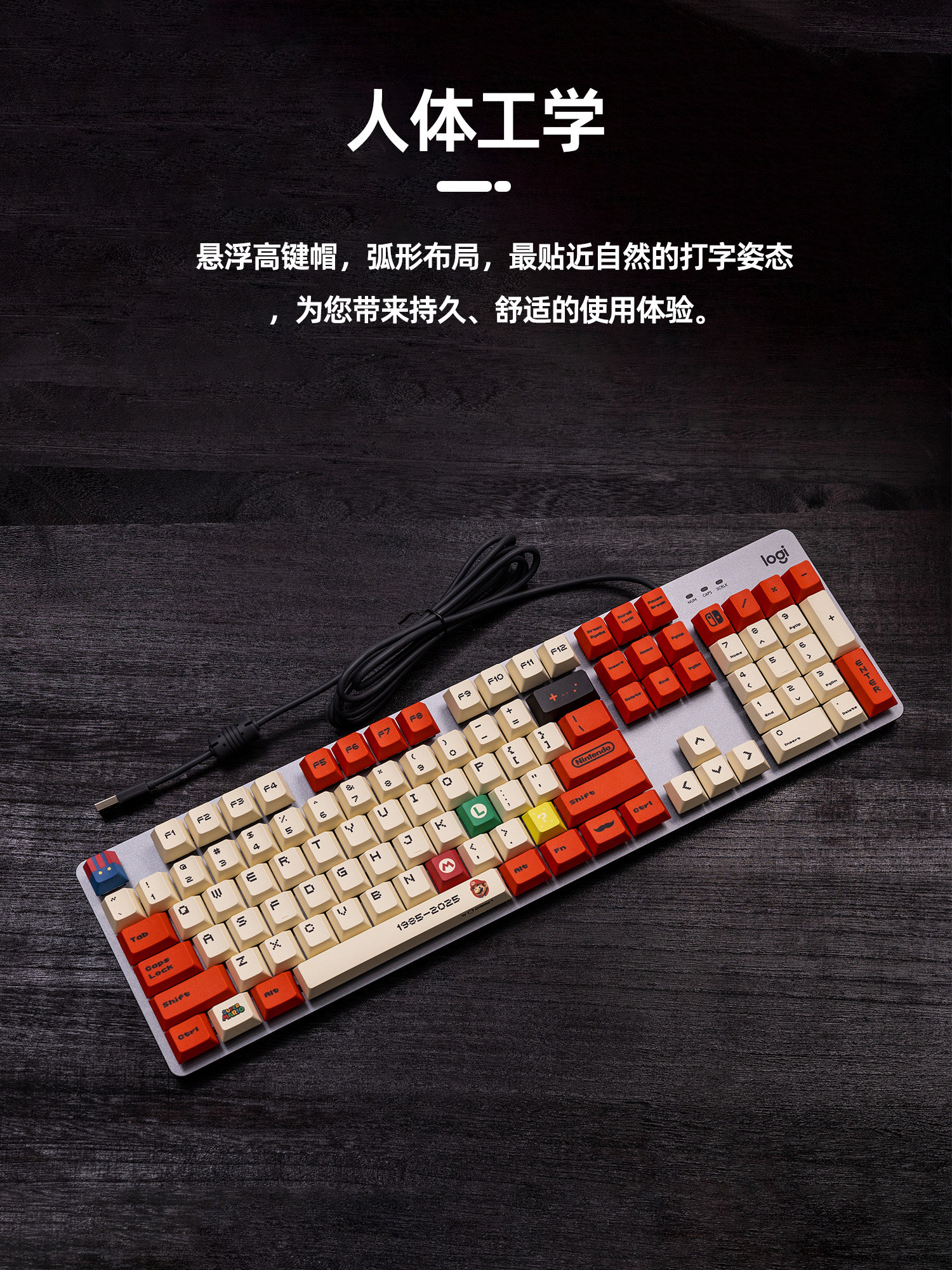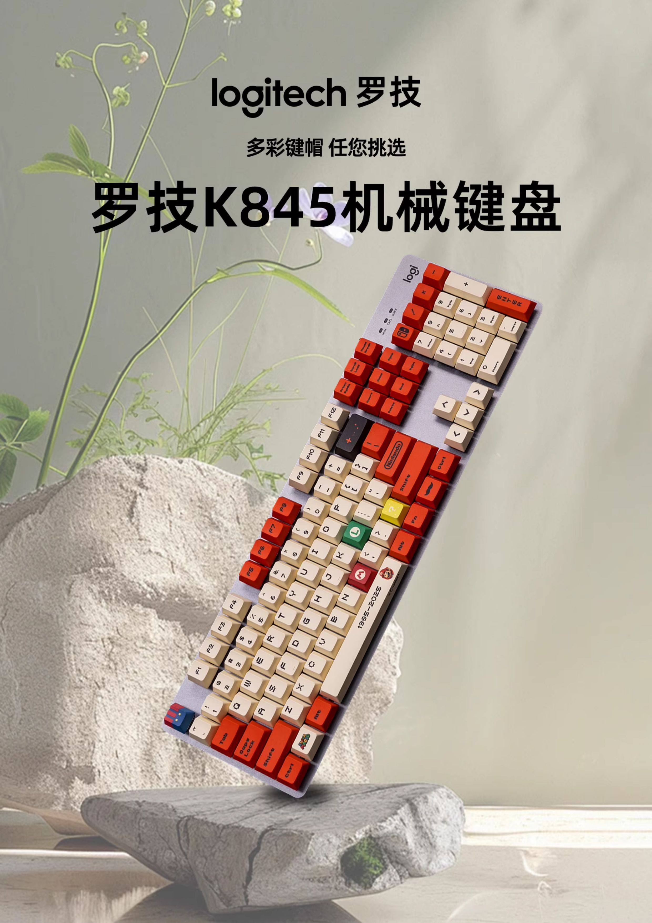 罗技K845有线机械键盘 电脑电竞办公游戏动漫马里奥客制化PBT键帽