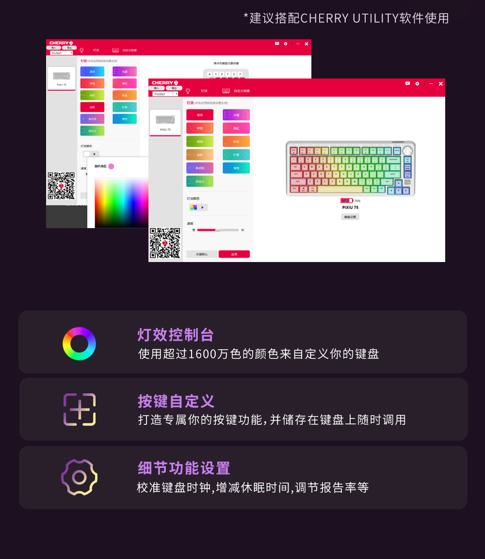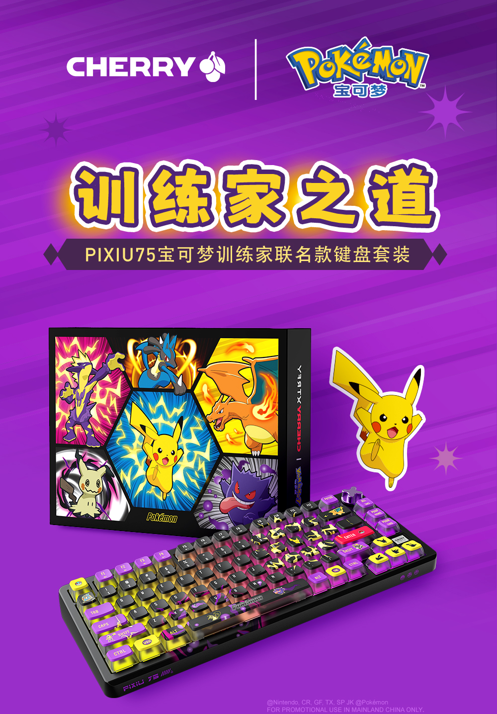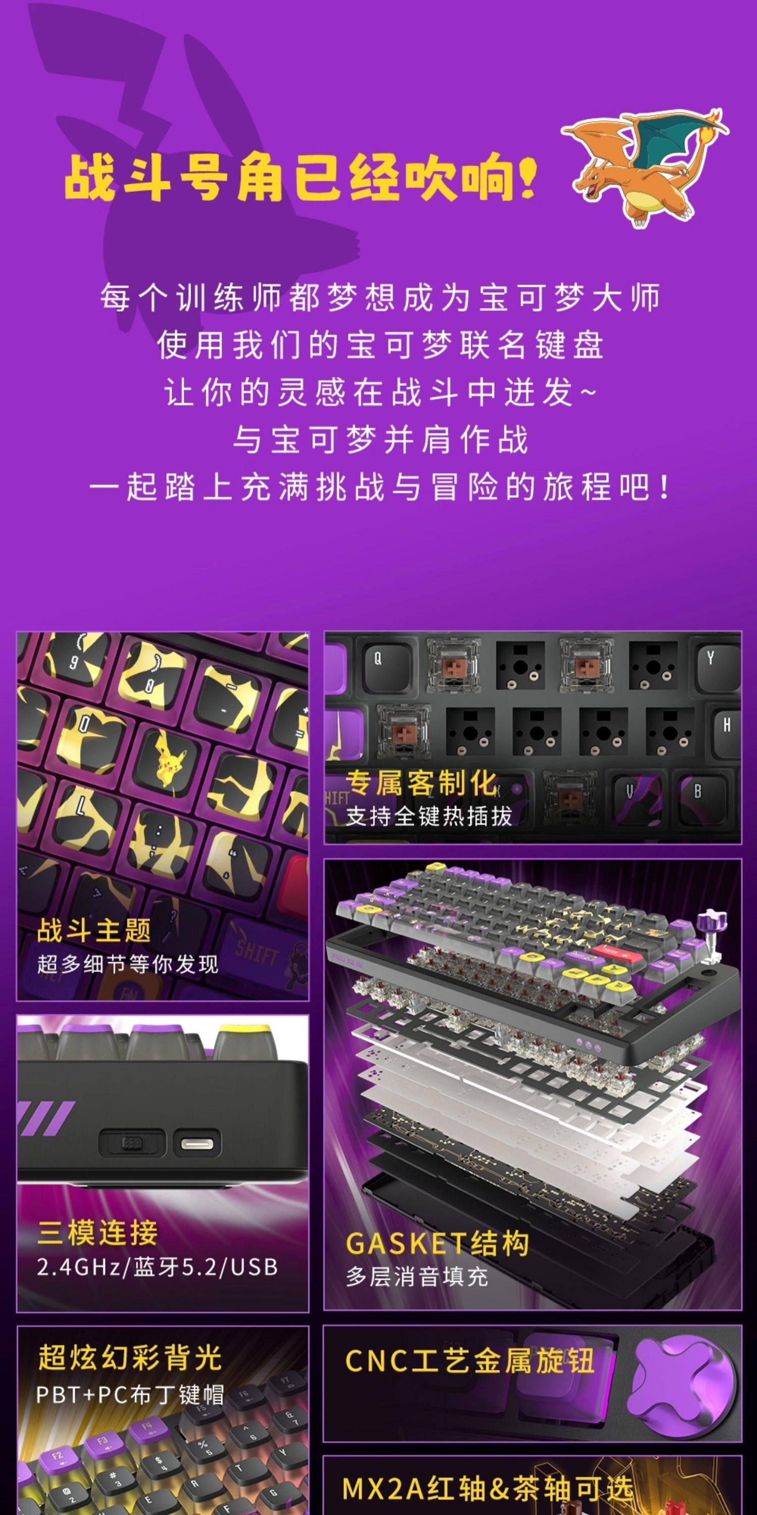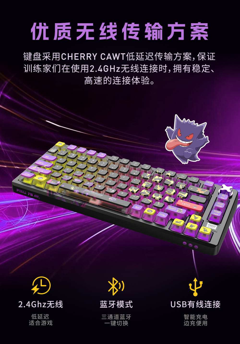 CHERRY樱桃PIXIU75宝可梦联名无线三模机械键盘游戏电竞兼容Ma